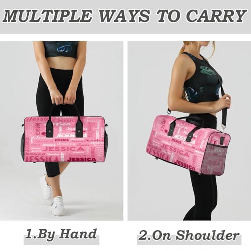HOT ! Personalized Name Sport Duffel Bags, Custom Overnight Weekender Bag Sleepover Bags Workout Bag for Cheer Dance Gymnastics, Pink