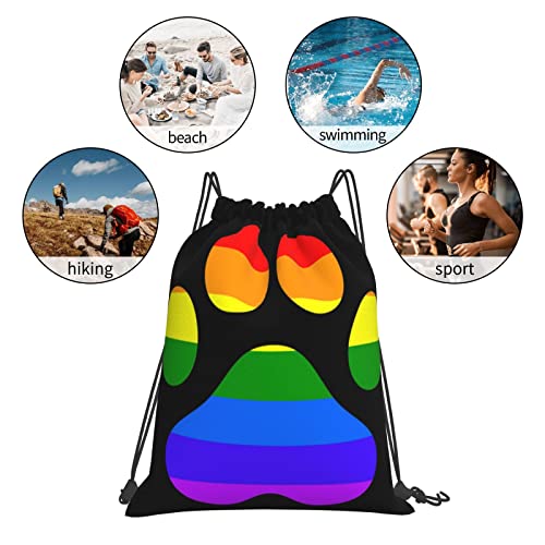 HOT ! Lgbt Gay Lesbian Furry Paw Pride Rainbow Outdoor Drawstring Bags Gym Bag Fashion Simple, Suitable For Men And Women, Young And Old