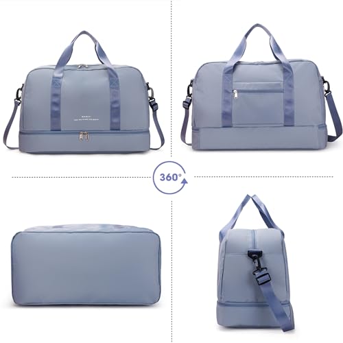 HOT ! Light Sports Travel Duffel Bag with Shoe Compartment, Large Capacity Gym Bag for Women, Weekender Overnight with Wet Pocket for lady Travel, Gym, Yoga(Blue)