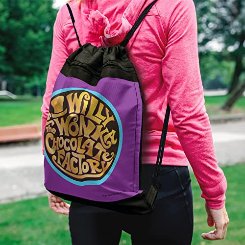 LOGOVISION Willy Wonka And The Chocolate Factory Logo Drawstring Backpack Sports Bag Sackpack 17" x 13", Perfect for Gym, Yoga or Practice 1