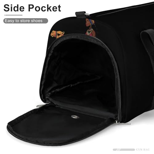 More information about African Girl Sitting On Ca-mel Gym Bag Travel Duffle Bags Carry On Tote Weekender Bag Suitable for Men Women