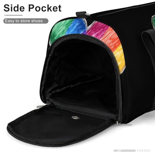 LGBT Rainbow Heart Gym Bag Travel Duffle Bags Carry On Tote Weekender Bag Suitable for Men Women 1