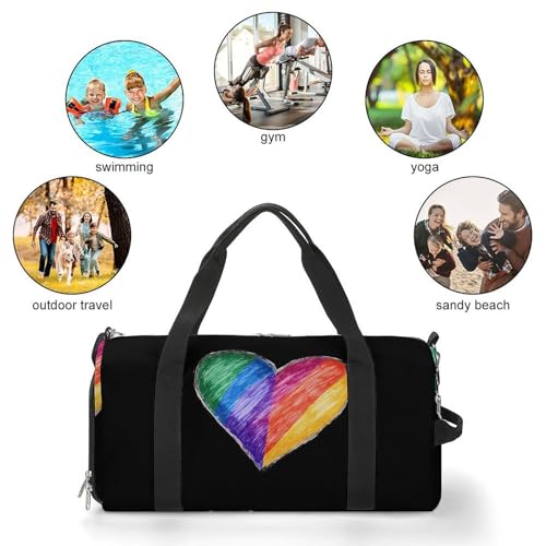 LGBT Rainbow Heart Gym Bag Travel Duffle Bags Carry On Tote Weekender Bag Suitable for Men Women 5
