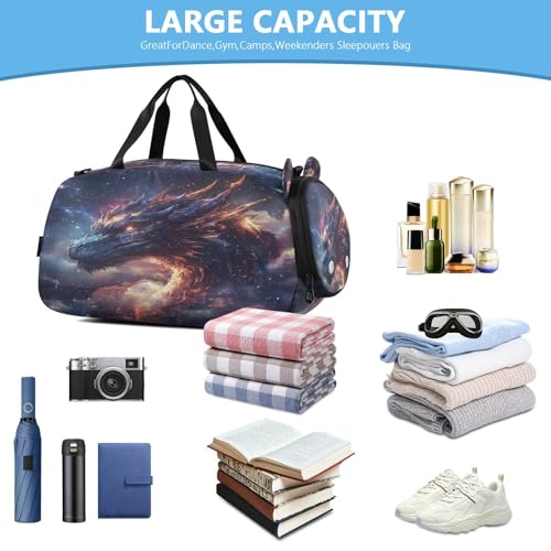 HOT ! Gym Travel Duffle Bag for Boys Girls Dreamy Dragon Sports Dance Bag with Shoe Compartment & Wet Pocket Football Kids Travel Bag Teens Sleepover Carry