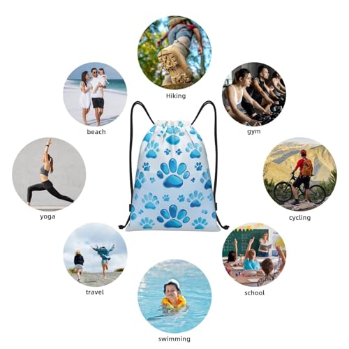 • Practical Features: Blue Paw Print string bags can be used as gym sports string bag, sports cinch sack, durable travel backpack bag, dirty laundry bag, or goodie bags, holding sweets or tiny toys as a festival gift, enough to meet your daily needs, easy to carry and easy to use