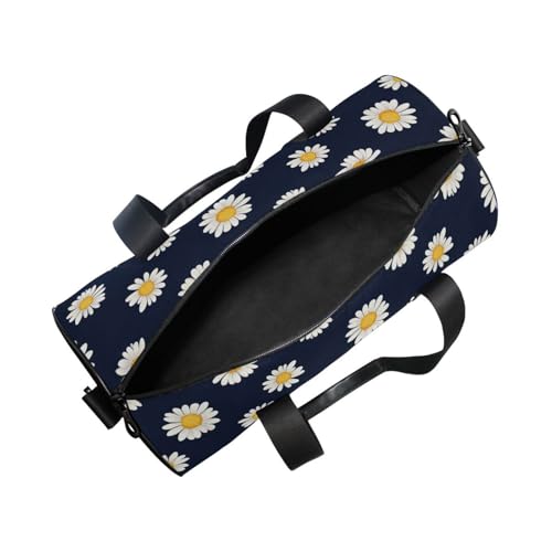HOT ! Daisy Black Sports Duffel Bag Durable Full Print Barrel Gym Bag with Large Main Pocket, Side Zippered Compartment for Training Gear Sportswear and Travel Essentials