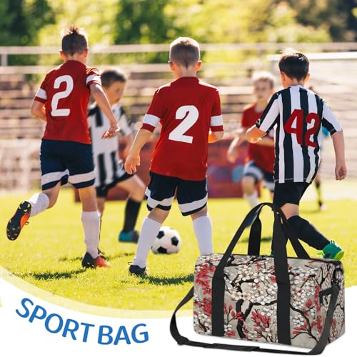 HOT ! Cherry Blossoms Decor Pattern Sports Duffle Bag for Women Men Waterproof Overnight Weekender Bag with Adjustable Strap Travel Tote Bags for Beach Yoga Work Dance Swim