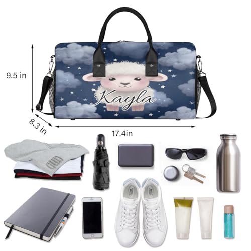 HOT ! Cartoon Sheep Custom Travel Bag, Personalized Duffle Bag with Initials Name, Lamb Cloud Sports Dance Gym Tote Bags Weekender Overnight Bags for Women Men