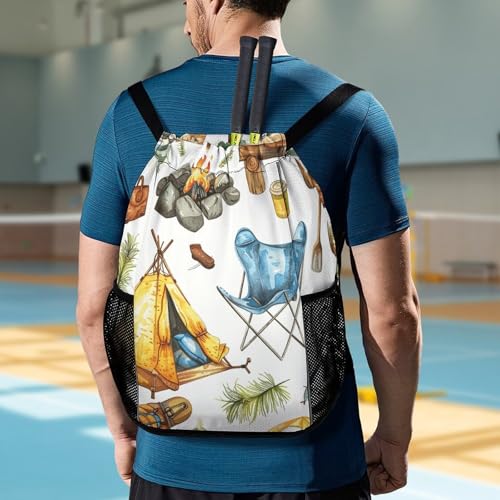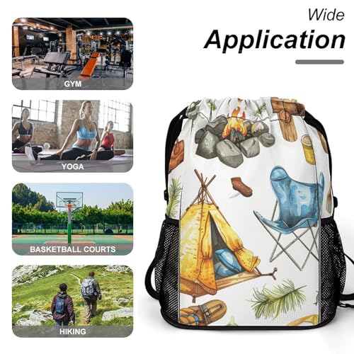 • Adjustable Shoulder Straps: This Camping Equipment Pattern Athletic Backpack with shoe compartment Features Adjustable Widened Shoulder Straps That Can Be Easily Adjusted to the Length You Need. Camping Equipment Pattern String Bag Offers a Ultimate Comfortable, Customized Fit, Even When Fully Loaded, Effectively Reducing the Pressure on Your Shoulders