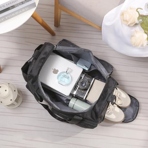 Gym Duffle Bag Personalized Travel Bag with Adjustable Shoulder Strap for Women Men Weekender Overnight Bag Sports Bag Carry On Bag (B-Black) 5