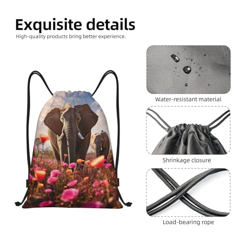 • Quick Adjust: flower-elephant print Drawstring Backpack for Women combines a lightweight build with a flexible drawstring mechanism, enabling fast opening and closing; easily adapt the shoulder straps by tying knots, ensuring a secure fit wherever you go.​​