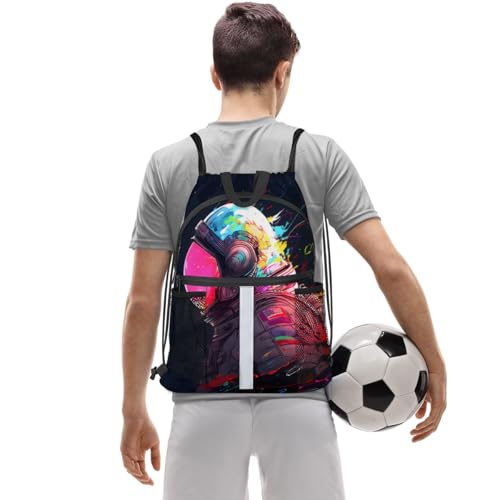 HOT ! Cartoon Astronaut Drawstring Backpack Waterproof String Bag Sackpack Outer Space Cinch Sack for Traveling Gym Sports with Mesh Pockets