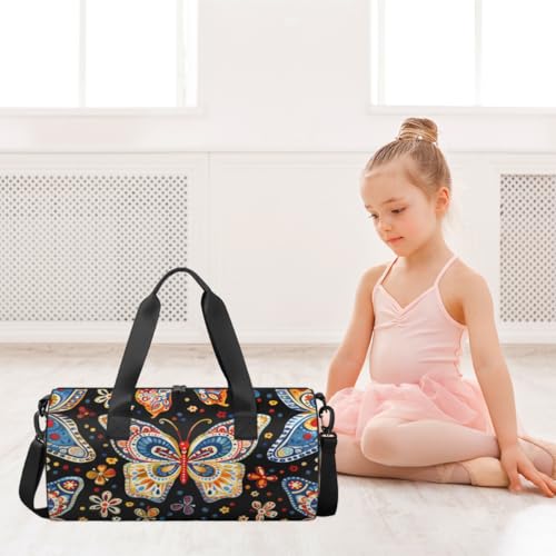 Colorful Butterfly Print Round Barrel Sports Fitness Bag, Travel Luggage Bag, Reusable Handbag, Suitable For Men and Women 2