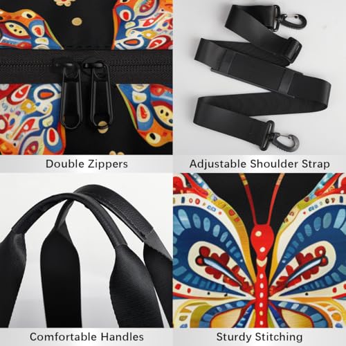Colorful Butterfly Print Round Barrel Sports Fitness Bag, Travel Luggage Bag, Reusable Handbag, Suitable For Men and Women 4