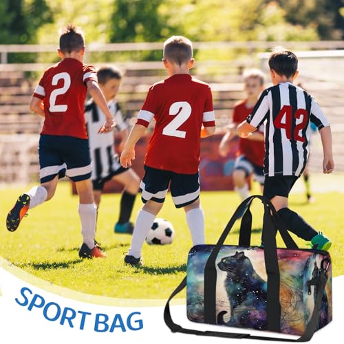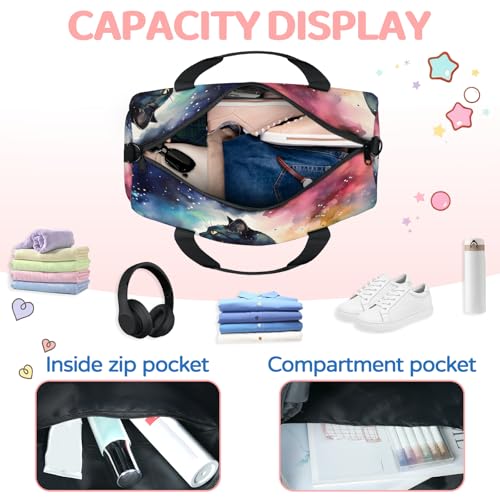 HOT ! Rainbow Black Cat Sports Duffle Bag for Women Men Waterproof Overnight Weekender Bag with Adjustable Strap Travel Tote Bags for Beach Yoga Work Dance Swim