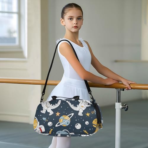 Duffle Bag Kids Gym Bag with Shoes Compartment & Wet Separation Overnight Travel Duffel Bag Astronaut Dinosaur for Girl Boy 6