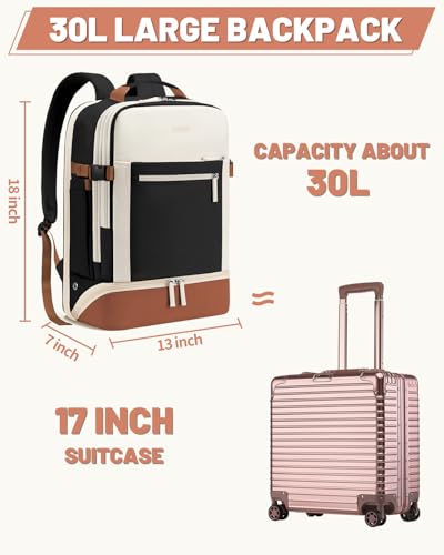 • [Multi-pocket Backpack]-The Travel Backpack for Women is designed with Multi functional pocket for 2-3 days travel necessities, holds about 30L. One separate laptop compartment hold 15.6 Inch Laptop as well as 15 Inch,14 Inch and 13 Inch Laptop. Main compartment with large capacity and various poctets be used for 5-8pcs summer clothes, pens, wallet, and other items, making your items organized. The carry on backpack is perfect for airline travel, gym sessions, business trips, or everyday use