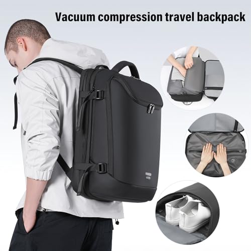HOT ! Yoidesu Vacuum Backpack with Air Pump, 35 to 50L Expandable Large Backpack with Detachable Vacuum Compression Bag, Rainproof Travel Backpack with USB Charging Port