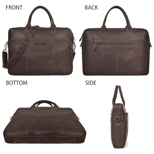 Blofinche Genuine Leather laptop briefcase mens 18 inch Computer Messenger shouledr work Satchel bags Coffee 4