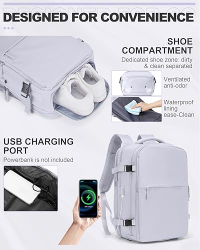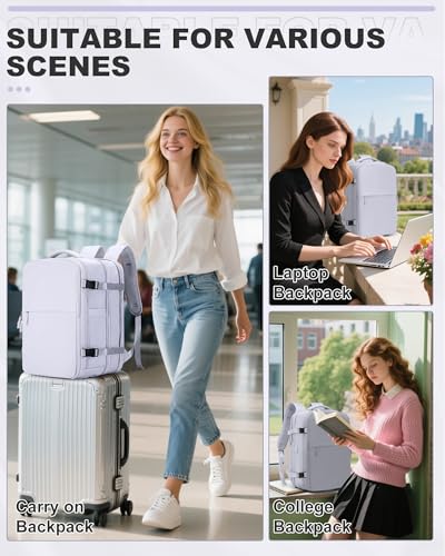 • Your Ideal Travel Companion: Backpacks easily open 0-180 degrees and fits under your plane seat or in the overhead and help you get through security quickly.This large backpack with a USB charging hole design makes it easier for you to charge your phone or other devices while traveling (The power bank and cable are not included).This laptop backpack comes with a luggage strap that can attaches the backpack to the suitcase.