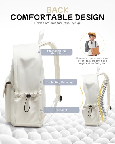School Backpack for Girls Women Middle School High School Bookbags for Men Teens Boys,Laptop Backpack Lightweight Travel Work Commuter Back Pack,Beige 5