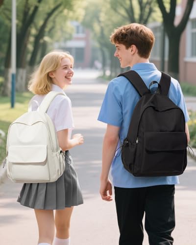 School Backpack for Girls Women Middle School High School Bookbags for Men Teens Boys,Laptop Backpack Lightweight Travel Work Commuter Back Pack,Beige 1