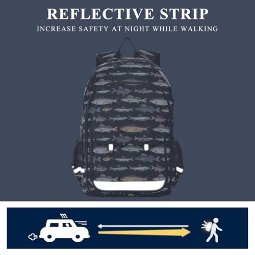 Fisyme Vintage Fish Black School Backpack Laptop Backpacks Bags Bookbag Travel Casual Computer Notebooks Daypacks 6
