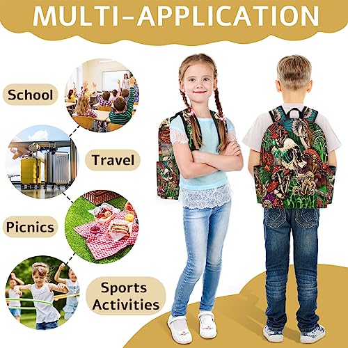School Backpack for Boys Girls Colorful Mushroom Tropical Goth Sugar Skull Kids Backpack Bookbag for Elementary Preschool Travel Daypack Laptop Backpack Purse for Women Men Teens 4