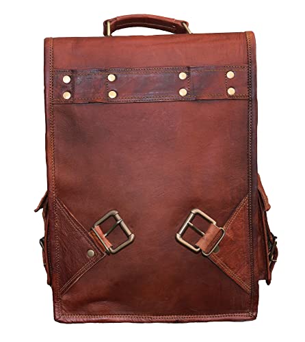 • PREMIUM MATERIAL: Superior Top grain Goat leather ,masterfully sewed with durable waxed Thread to ensure long lasting Messenger bag. The inner lining of the bag is sturdy canvas . The bag, when filled, stands on its own!! The bag is convertible, it can be used as a messenger bag as well as a backpack just by adjustig the back strap. The back strap stretches out of the loops to become a messenger bag.
