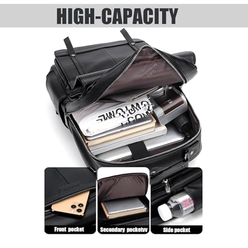 Leather Laptop Backpack For Men, Business Laptop Smart Bag Fits 15.6 Inch Laptop with USB Charging Port,Medium Water Resistant Backpack for Work Office College 4