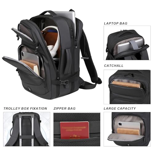 Wesoke Large Travel Backpack 17 Inch Laptop Backpack for Men Women, Big Carry on Backpack Expandable Luggage Suitcase Rucksack Casual Daypack with USB Port for Weekender Business Hiking, Black 7
