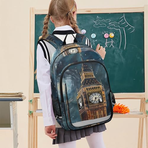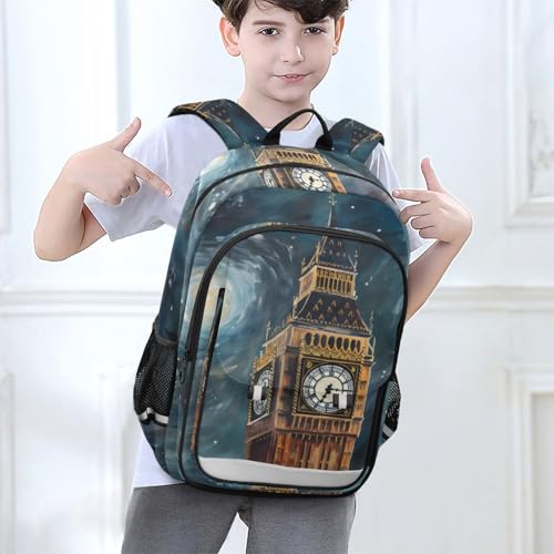 HOT ! Backpack Big Ben Blue Starry Travel Laptop Daypack Shoulder Bag Book Bag Daypack with Reflective Strip 12.9 ×17.7 In