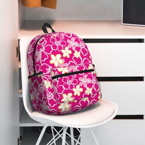 • Convenient Storage: Featuring one main compartment with a built-in laptop sleeve, two side mesh pockets for water bottles or umbrellas, and one front zipper pocket for keys, phones, and other small items, this Hawaiian Style Pink Flower backpack ensures all your essentials are well-organized and easily accessible.
