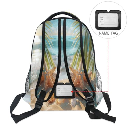 Beach View Pattern Backpack Laptop Backpack Casual Daypack with Name Tag for Men Women, Fits 15.6" Laptop 6