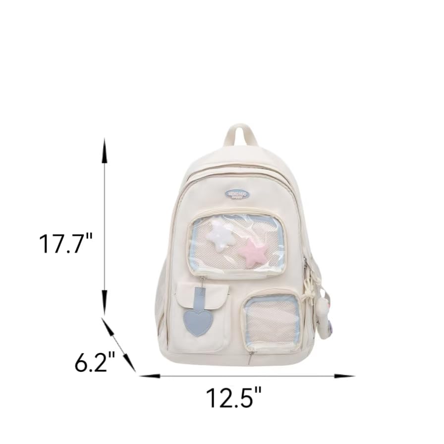 • Large Capacity: Measuring 12.5" x 6.2" x 17.7" (L xW x H), this preppy backpack offers ample storage space for daily essentials such as Pad, laptop, notebook, cell phone, wallet, water bottle and more.