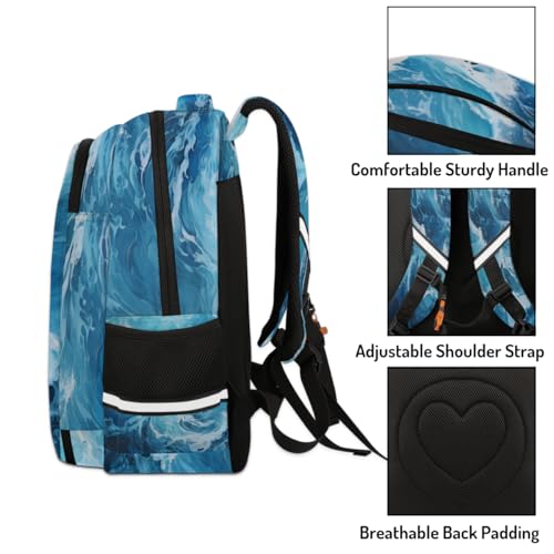 Abstract Waves Bookbag Backpack for Women Men Sea Casual Daypack with Compartment & Multiple Pockets Book Bags Travel Bag Laptop Backpacks 3