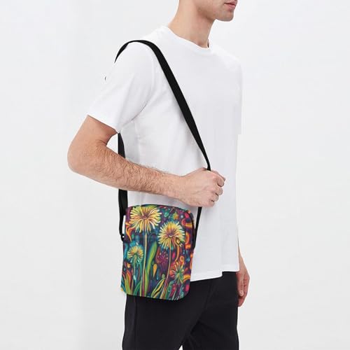 HOT ! messenger bag for women mens crossbody bag Casual Womens Purse Adjustable Strap for outdoor sports outdoor sports- Dandelion Psychedelic Colorful