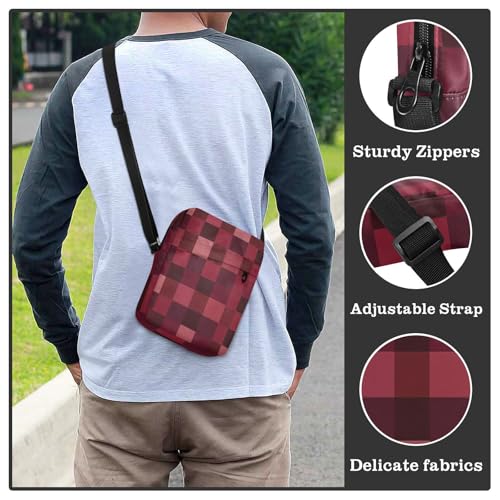 HOT ! crossbody messenger bag shoulder bags Womens Cross Body Purses Adjustable Strap for business business- Fresh Squares Burgundy Red
