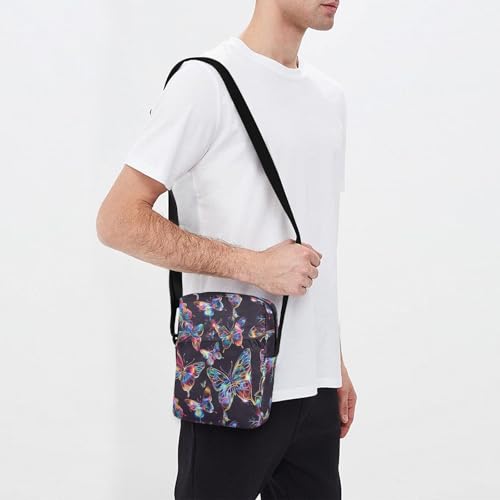 KLL Dreamy Colorful Butterflies Black Background messenger bag for women crossbody Vegan Leather mens shoulder bags crossbody Casual Shoulder Handbags 1