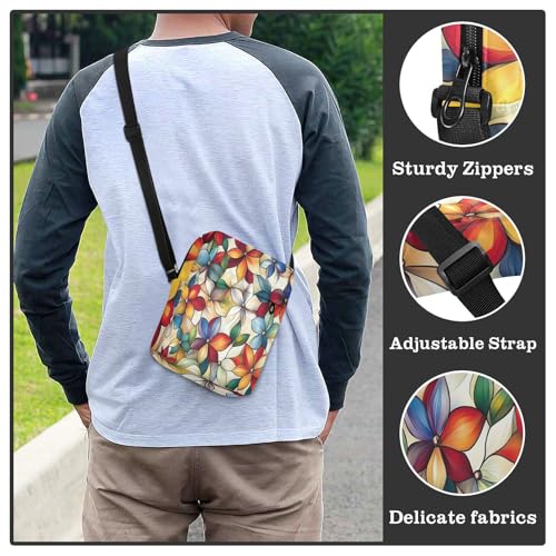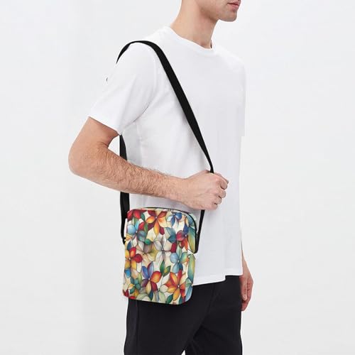 Flower Pattern Stained Glass Style messenger bag cute mens shoulder bags crossbody Womens Cross Body Purse Adjustable Strap for Casual outdoor sports 6