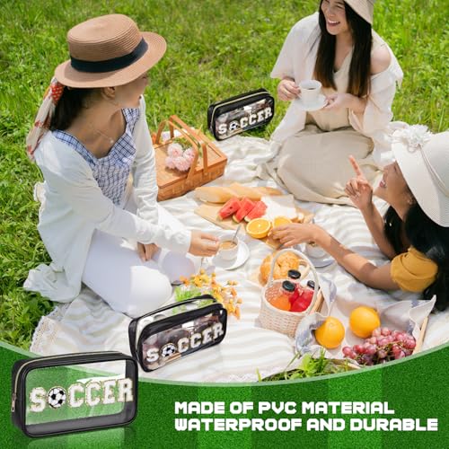 6 Pcs Soccer Clear Cosmetic Makeup Bag with Chenille Letter Patch Sport Goodie Clear PVC Pouch Organizer Waterproof Travel Toiletry Bags for Sports Theme Birthday Party Supplies 6