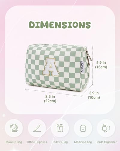 Narwey Initial Makeup Bag for Teen Girls Kids Trendy Stuff 6 8 10 11 12 13 14 16 18 Years Old, Personalized Monogram Cosmetic Toiletry Bag, Birthday Gifts for Women Tween (Green A) 4