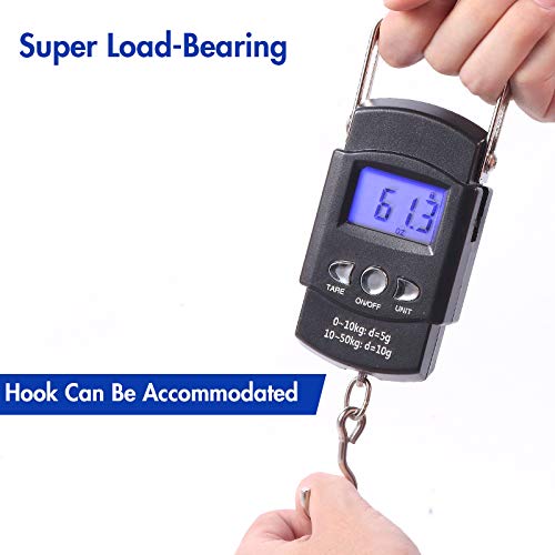 2 Pack Fish Scales, Portable Luggage Weight Scale with Backlit LCD Display 110lb / 50kg Electronic Balance Fishing Postal Hanging Hook Scale with 3.28 ft Measuring Tapes & 4 AAA Batteries (Black) 4