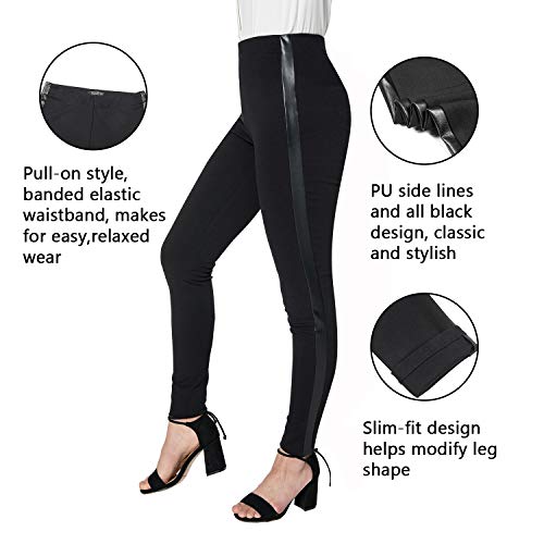 More information about Asoran Women's Dress Pants Black Tuxedo Work Pants Stretch Skinny Slacks with Leather Stripe for Casual Business Office
