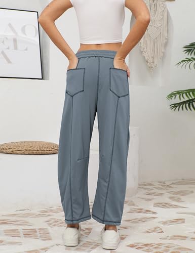 Athlisan Womens Baggy Barrel Pants Wide Leg Lounge Drawstring Sweatpants with Pockets 6