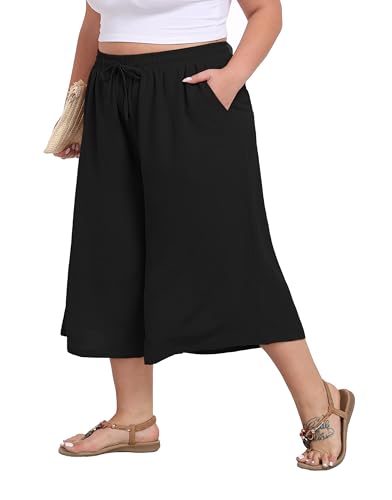 LIGHTBACK Women's Plus Size Wide Leg Capri Pants Loose Lounge Cropped Culottes Summer Casual Palazzo Pants with Pockets 6