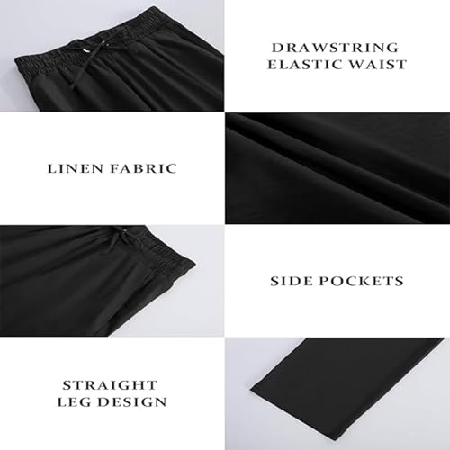 More information about Capri Pants for Women 2025 Summer Drawstring Elastic High Waist Casual Capris Straight Wide Leg Cotton Linen Pants