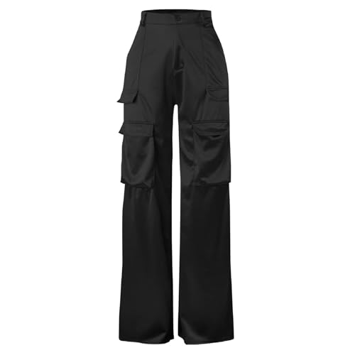 More information about Women Satin Cargo Pants High Waisted Straight Wide Leg Casual Pants Multi Pockets Club Y2k Trousers