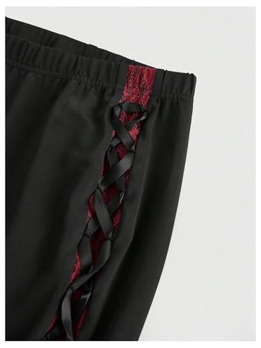 Verdusa Women's Goth Bow Tie Contrast Lace Flare Pants High Rise Ruffle Bell Bottom Pants 5