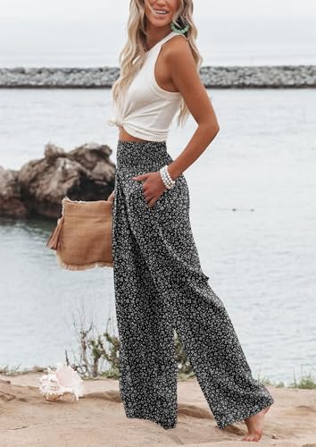 • Excellent Design: Smocked straight wide leg pants adopts a unique elastic band and high waist design, showcasing your long legs.flowy dress pants comfy and chic.